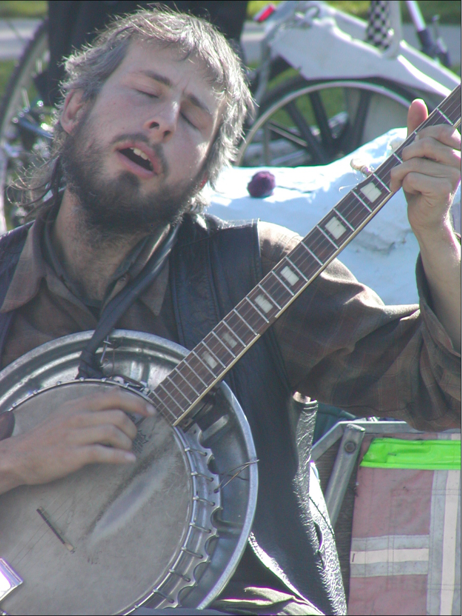 Farmers' Market: jugglers and musicians